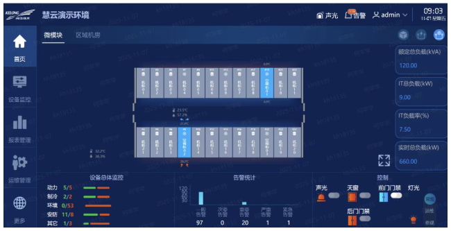 方案搭载微模块综合监控系统,链路管理功能清晰展示供配电、制冷、通信系统的运行状态,为运维人员提供更全面、直观的管理视角。